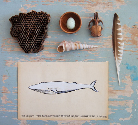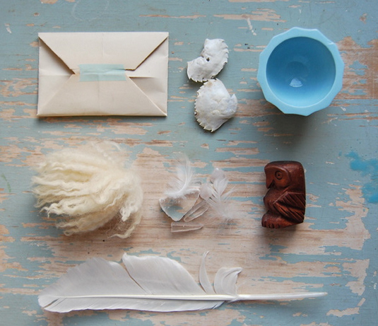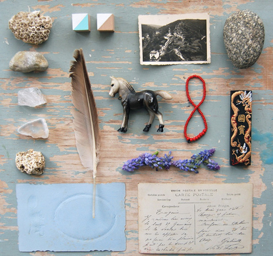一位來(lái)自荷蘭最佳旅游城市格羅寧根的插畫(huà)設計師Anja,他的戀物情節完全釋放,她將平時(shí)收集的各種小物變身為一套十足反映戀物情節的擺拍,就在一張斑駁老舊的藍漆木桌上,非常整齊的擺弄著(zhù)生活中很不起眼的一系列物品。九月的綠葉,夏日的貝殼,老照片,牛皮紙舊信封,這些已經(jīng)失去實(shí)用性質(zhì)的東西卻默默保留著(zhù)美好的紀念意義,被有心之人如此小心珍藏。